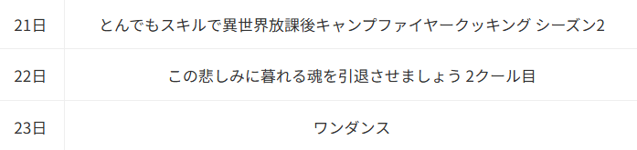 アニメ | 放送時期 |