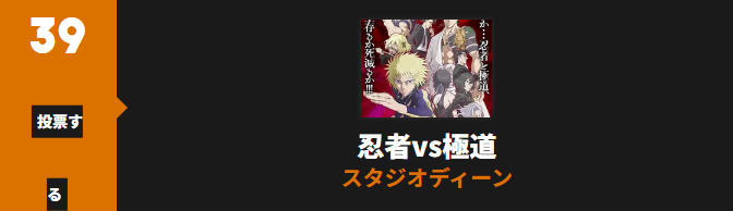 この「Anime Trending」での「忍者と極道」の評価ですが、アニメ1話放送時点でウィークリーランキング39位にランクインしていました。