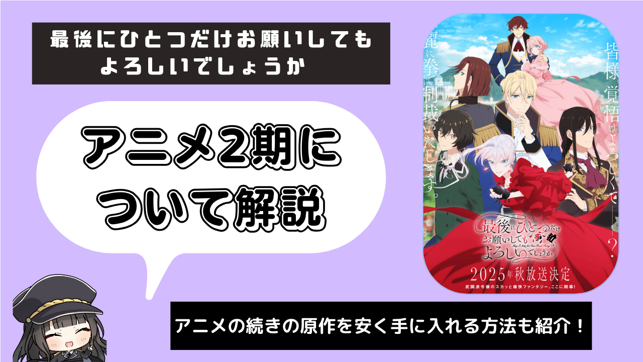 ただしアニメ終了後にすぐに発表されることがあれば2026年には2期が放送されるかもしれません。